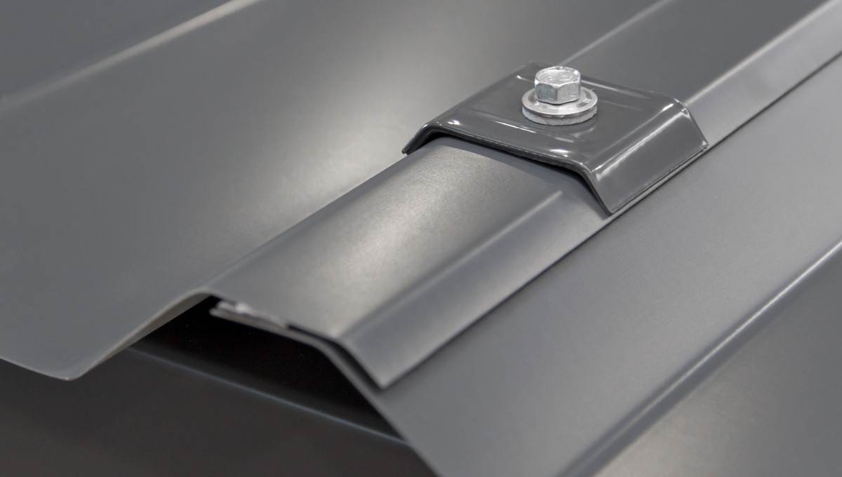 Die Kalotten können bei der Befestigung der Dachbleche mit Edelstahlschrauben ohne Bohrspitze auch als Bohrschablone verwendet werden. Selbstbohrende Schrauben können direkt durch die runde Aussparung der Kalotte geführt und mit der Unterkonstruktion verschraubt werden. Die flächige Kraftverteilung verhindert das Eindrücken der Profilsicken während der Montage. Besonderen Schutz bietet die Kalotte vor abhebenden Windkräften wie Windsog.