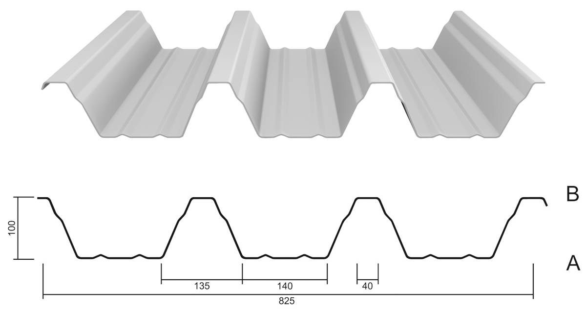 Das Stahltrapezprofil M 100/275 fertigen wir in vielen Standardfarben. Das Hochprofil kann als Dach- oder Wandprofil eingesetzt werden. Die maximale Fertigungslänge beträgt 25.000 mm. Viele verschiedene Varianten in Farbe und Beschichtung sind möglich.