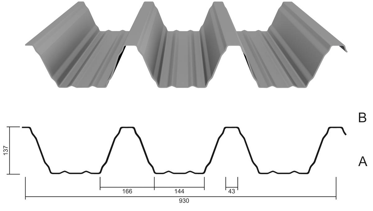Das Stahltrapezprofil M 135.1/310 fertigen wir in vielen Standardfarben. Das Hochprofil kann als Dach- oder Wandprofil eingesetzt werden. Die maximale Fertigungslänge beträgt 28.000 mm. Viele verschiedene Varianten in Farbe und Beschichtung sind möglich.