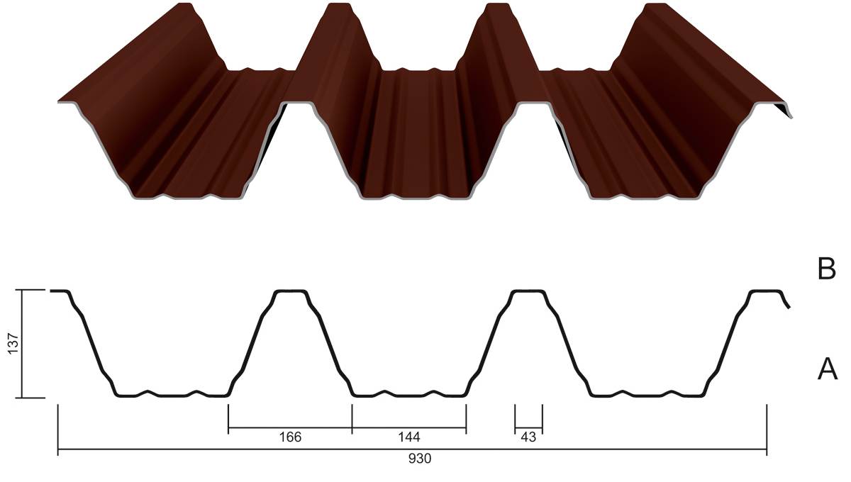 Der Stahlkern des Trapezprofiles ist durch einen metallischen Überzug aus einer Aluminium-Zink-Legierung, einem Zinkmagnesiumüberzug oder durch Zink geschütz. Die leicht glänzende polyesterbeschichtete Oberfläche ist glatt. Alle bei uns bezeichneten MÜC-Farben unterliegen strengen Herstellerkontrollen. Sie stellen die bestmögliche Darstellung der RAL-CLASSIC-Farben dar. Aufgrund unterschiedlicher Herstellungsverfahren sowie Glanzunterschieden sind visuell geringfügige Farbabweichungen Stand der Technik und hinzunehmen. Verbindliche Farben sind nur nach schriftlichen Mustervereinbarungen möglich.