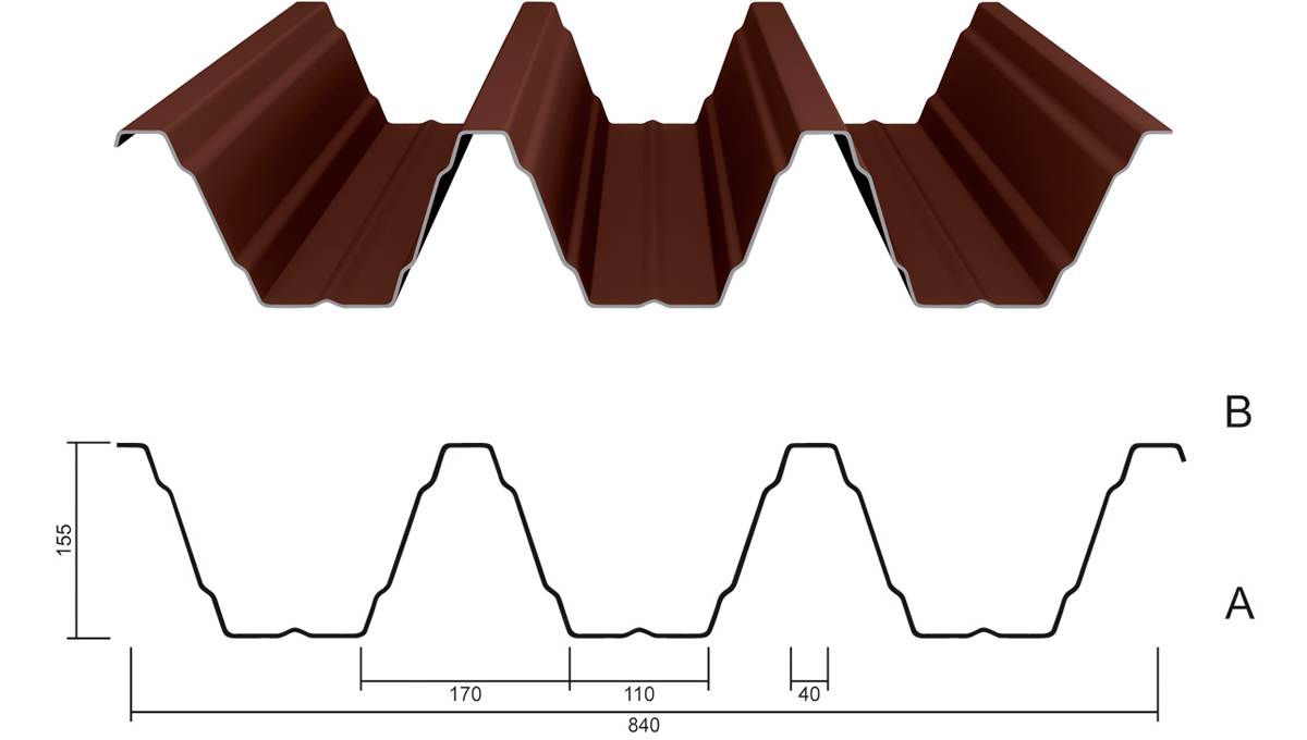 Das Stahltrapezprofil M 150/280 fertigen wir in den Standardfarben 9002 Grauweiß, 7016 Anthrazitgrau und 8012 Rotbraun. Das Hochprofil kann als Dachprofil eingesetzt werden. Die maximale Fertigungslänge beträgt 25.000 mm.