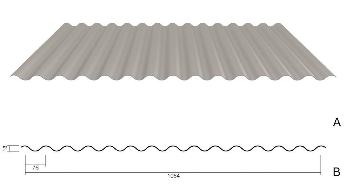 Das Wellprofil M 18/76 fertigen wir in vielen Standardfarben, es kann als Dach- oder Wandprofil eingesetzt werden. Die maximale Fertigungslänge beträgt 24.300 mm. Viele verschiedene Varianten in Farbe und Beschichtung sind möglich.
