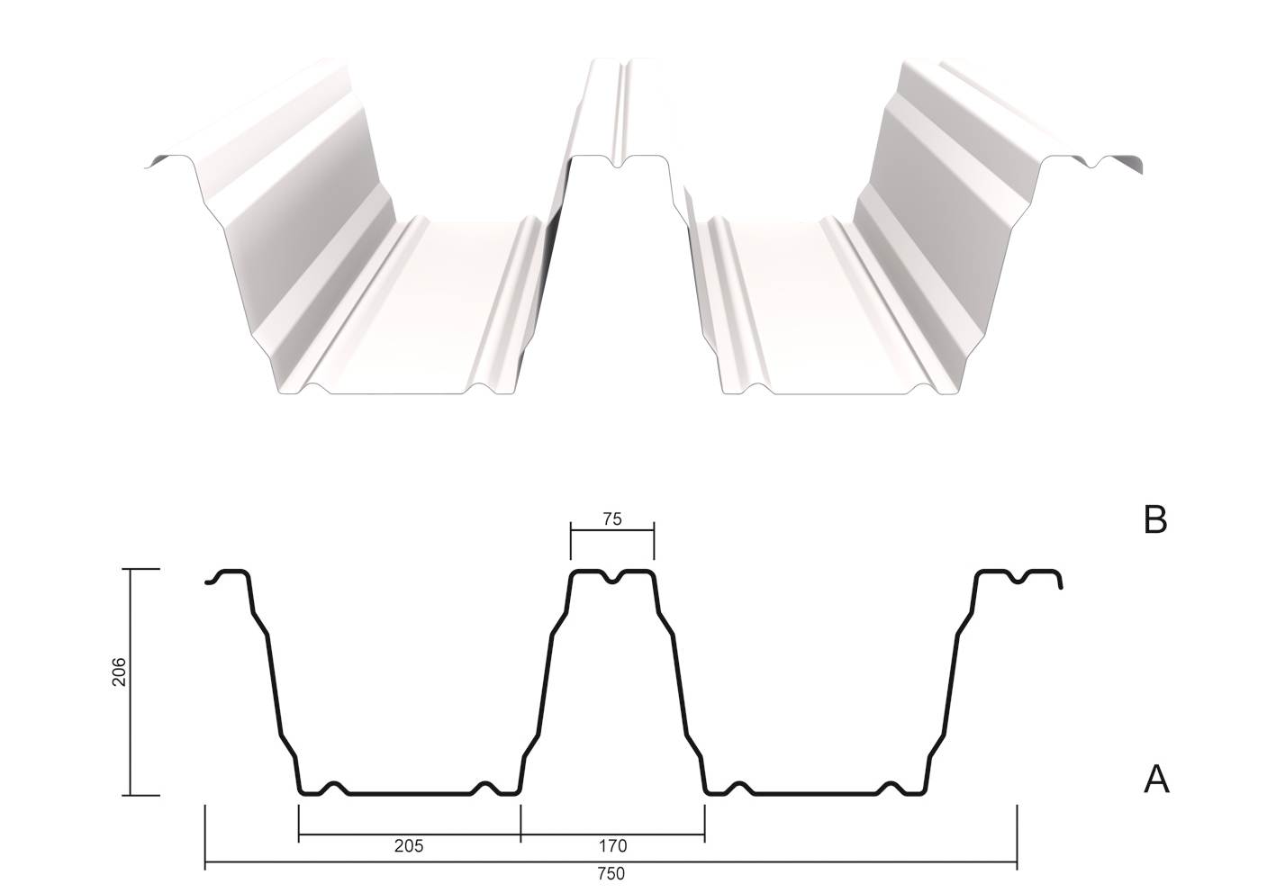 Trapezblech M 206.1/375 ab 0,75 mm