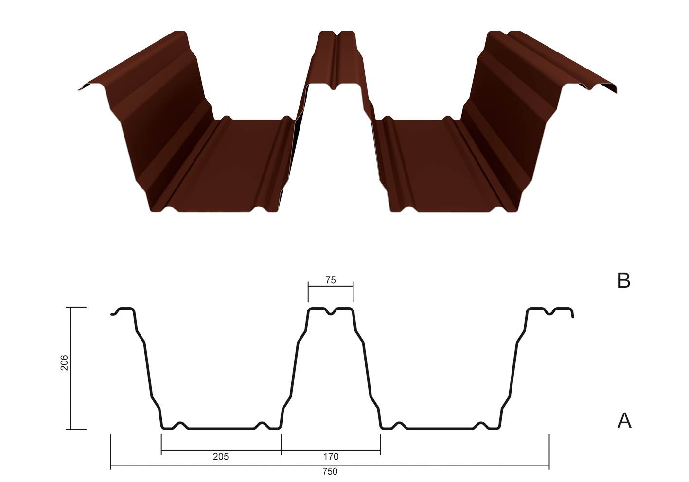 | Deckbreite je Tafel: | 750 mm |