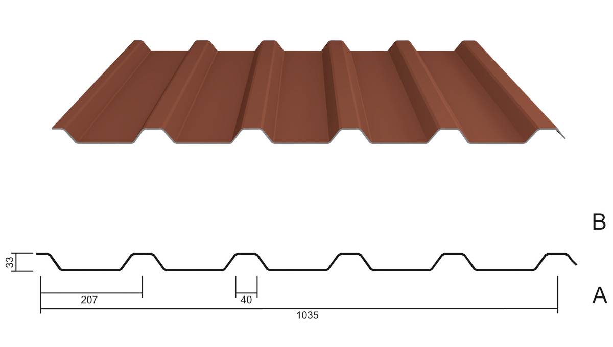 Das Stahltrapezprofil M 35/207 fertigen wir in vielen Standardfarben, es kann als Dachprofil eingesetzt werden. Die maximale Fertigungslänge beträgt 24.300 mm. Viele verschiedene Varianten in Farbe und Beschichtung sind möglich.