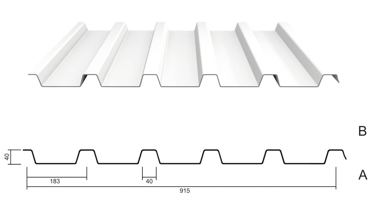 Das Stahltrapezprofil M 40/183 fertigen wir in vielen Standardfarben, es kann als Dach- oder Wandprofil eingesetzt werden. Die maximale Fertigungslänge beträgt 24.300 mm. Viele verschiedene Varianten in Farbe und Beschichtung sind möglich.