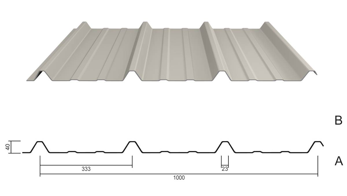 Das Stahltrapezprofil M 40KD/333 fertigen wir in vielen Standardfarben, es kann als Dach- oder Wandprofil eingesetzt werden. Die maximale Fertigungslänge beträgt 24.300 mm. Viele verschiedene Varianten in Farbe und Beschichtung sind möglich.