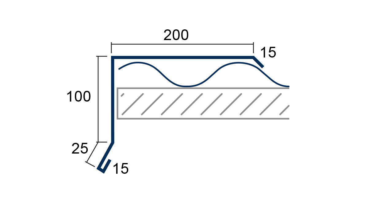 Als Ortgang (15/25/100/200/15) wird der seitliche Dachverlauf von der Traufe bis zum First bezeichnet. Spezielle Kantteile, sogenannte Ortgangbleche, schließen das Dachblech über die Kanten ab und tragen so zu einem zusätzlichen Schutz vor Verwitterung der Dachunterkonstruktion bei. So erhält man einen sauberen funktionellen und optischen Dachblech-Abschluss.
