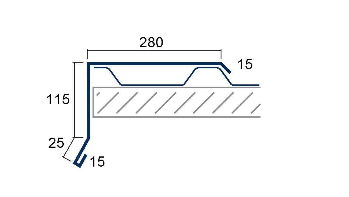 Als Ortgang (15/25/115/280/15) wird der seitliche Dachverlauf von der Traufe bis zum First bezeichnet. Spezielle Kantteile, sogenannte Ortgangbleche, schließen das Dachblech über die Kanten ab und tragen so zu einem zusätzlichen Schutz vor Verwitterung der Dachunterkonstruktion bei. So erhält man einen sauberen funktionellen und optischen Dachblech-Abschluss.