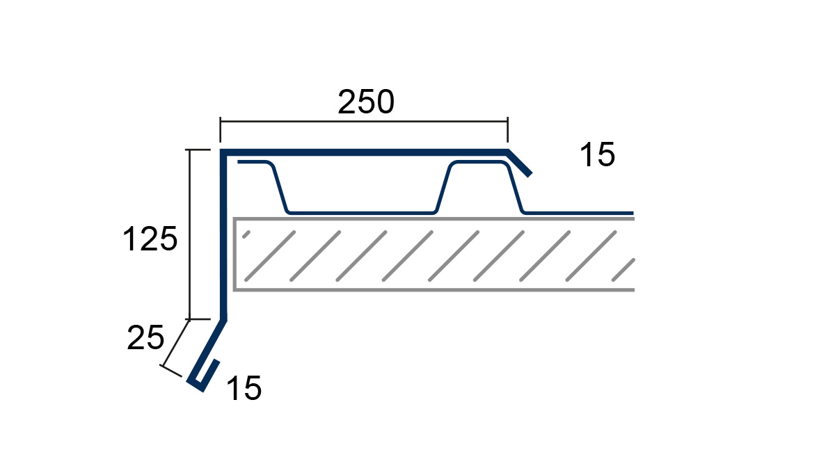 Als Ortgang (15/25/125/250/15) wird der seitliche Dachverlauf von der Traufe bis zum First bezeichnet. Spezielle Kantteile, sogenannte Ortgangbleche, schließen das Dachblech über die Kanten ab und tragen so zu einem zusätzlichen Schutz vor Verwitterung der Dachunterkonstruktion bei. So erhält man einen sauberen funktionellen und optischen Dachblech-Abschluss.