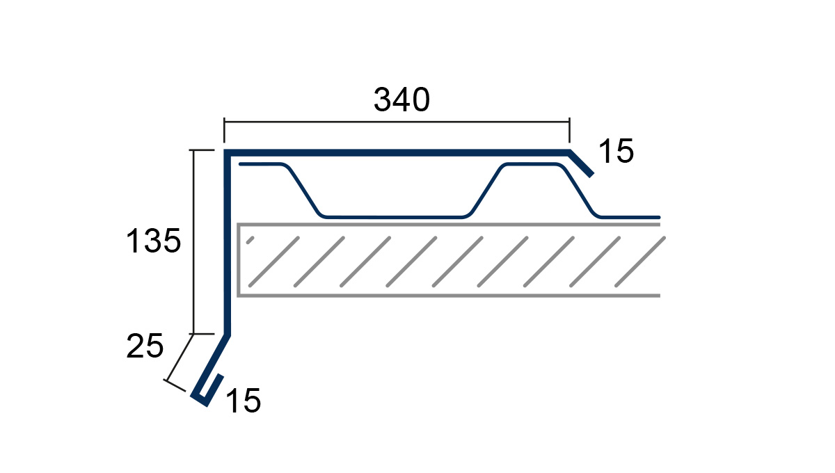 Als Ortgang (15/25/135/340/15) wird der seitliche Dachverlauf von der Traufe bis zum First bezeichnet. Spezielle Kantteile, sogenannte Ortgangbleche, schließen das Dachblech über die Kanten ab und tragen so zu einem zusätzlichen Schutz vor Verwitterung der Dachunterkonstruktion bei. So erhält man einen sauberen funktionellen und optischen Dachblech-Abschluss.