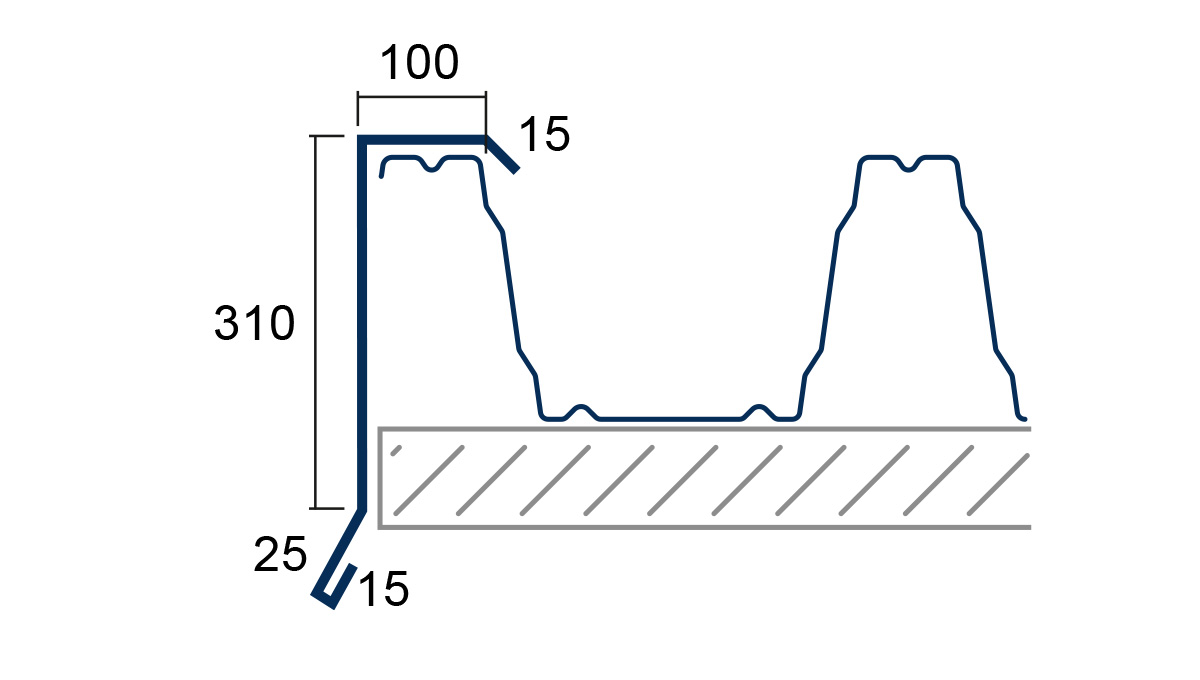 Als Ortgang (15/25/310/100/15) wird der seitliche Dachverlauf von der Traufe bis zum First bezeichnet. Spezielle Kantteile, sogenannte Ortgangbleche, schließen das Dachblech über die Kanten ab und tragen so zu einem zusätzlichen Schutz vor Verwitterung der Dachunterkonstruktion bei. So erhält man einen sauberen funktionellen und optischen Dachblech-Abschluss.