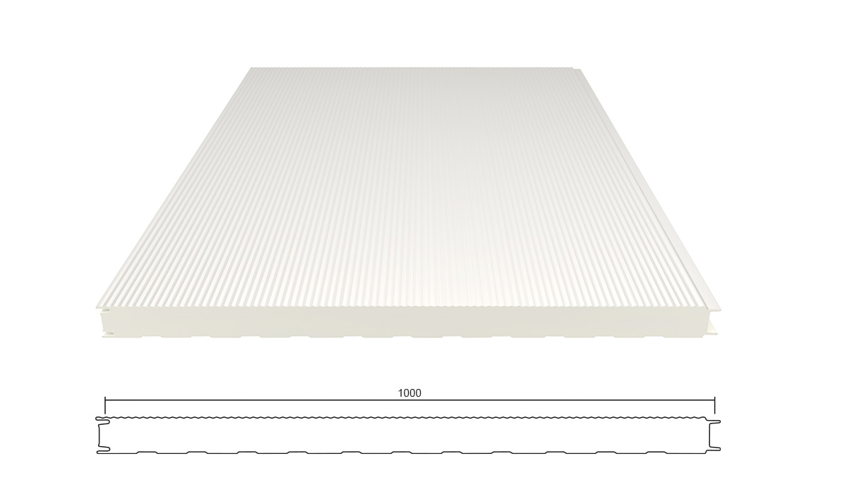 Eine Sandwich Wandplatte besteht aus einem Verbund zweier metallischer Deckschalen und einem Stützkern aus hochwärmedämmenden PIR-Schaum. Durch die Kombination der verschiedenen Materialien kann die Errichtung einer gedämmten Wand besonders schnell, einfach und flexibel ausgeführt werden. Gute Wärmedämmung machen diese Bauelemente auch für Bauherren außerhalb des Industriebau-Bereiches interessant. Kerndicke dieser Platte beträgt 40 mm.