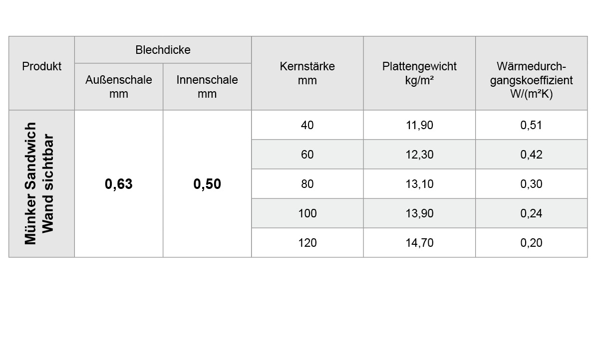 U=0,35 W/(m²K) = Münker Sandwich Wand 80 mm Kern |