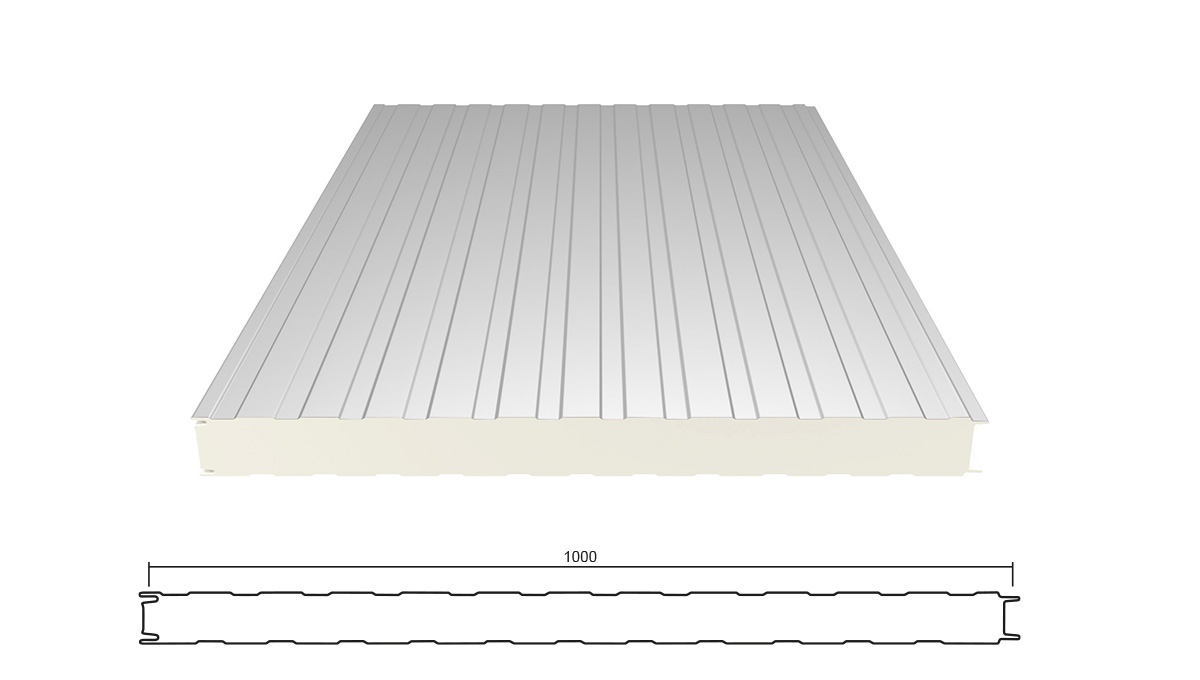 Eine Sandwich Wandplatte besteht aus einem Verbund zweier metallischer Deckschalen und einem Stützkern aus hochwärmedämmenden PIR-Schaum. Durch die Kombination der verschiedenen Materialien kann die Errichtung einer gedämmten Wand besonders schnell, einfach und flexibel ausgeführt werden. Gute Wärmedämmung machen diese Bauelemente auch für Bauherren außerhalb des Industriebau-Bereiches interessant. Kerndicken von 40 - 120 mm sind möglich.