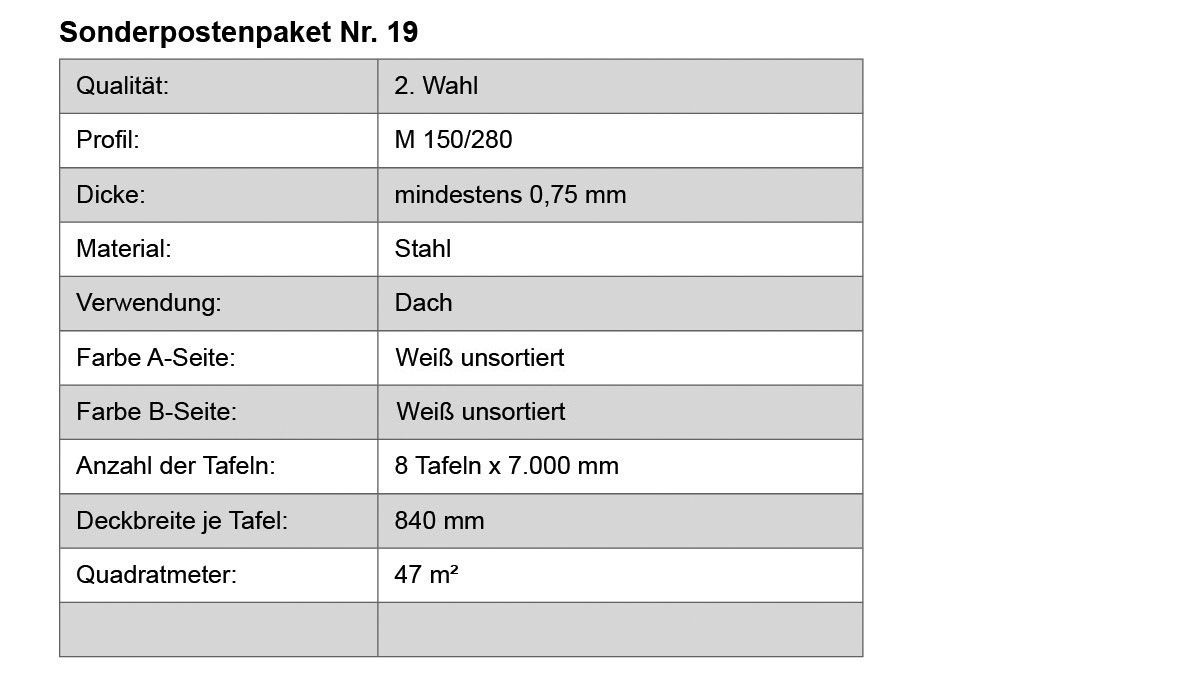 Es handelt es sich um Ware aus Überproduktion/ Restabschnitten. Die Tafeln können Mängel, wie z.B. Beulen, Farbabweichungen, Kratzer oder teilweise Vliesbeschichtung von unten, aufweisen. Diese Mängel stellen keinen Reklamationsgrund dar. Sofern unter „technischen Daten“ keine konkrete Materialstärke angegeben ist, kann die Materialstärke variieren. Der Profiltyp innerhalb eines Pakets ist gleich.