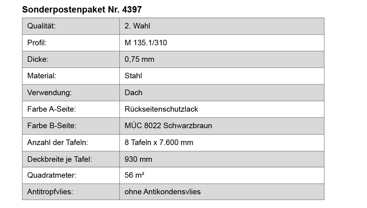 Profil M 135.1/310 - 8 Tafeln x 7.600 mm = 56,18 m²