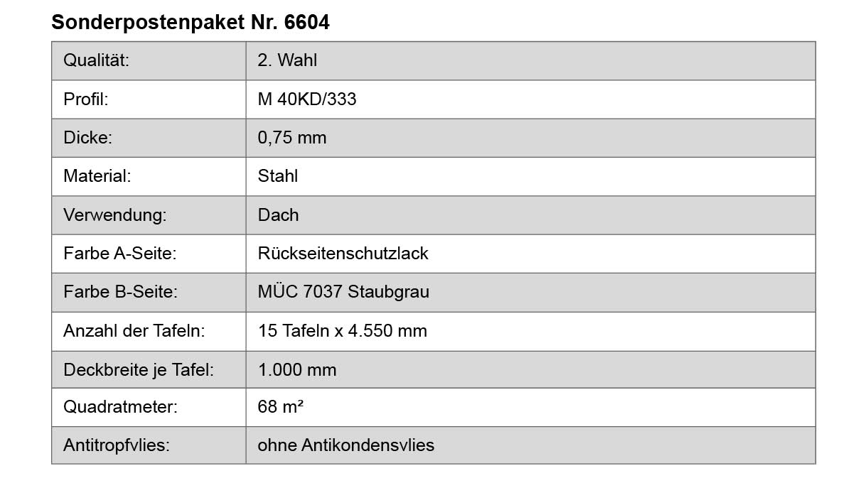Profil M 40KD/333 - 14 Tafeln x 4.550 mm = 68,25 m²
