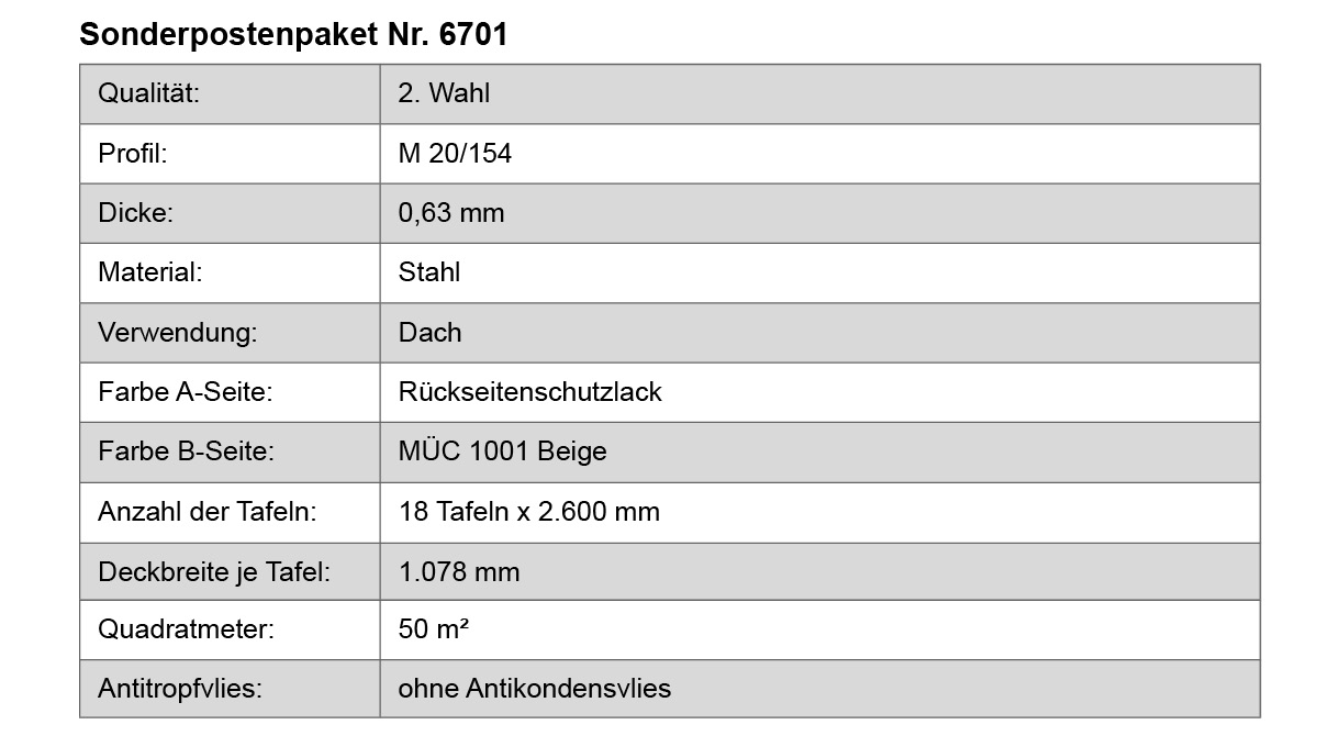 Trapezblech Sonderposten Paket - 6701