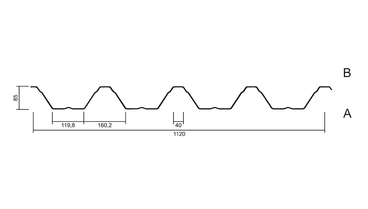 Profil M 85/280 - 6 Tafeln x 5.500 mm + 1 x 5.280 mm = 42,87 m²