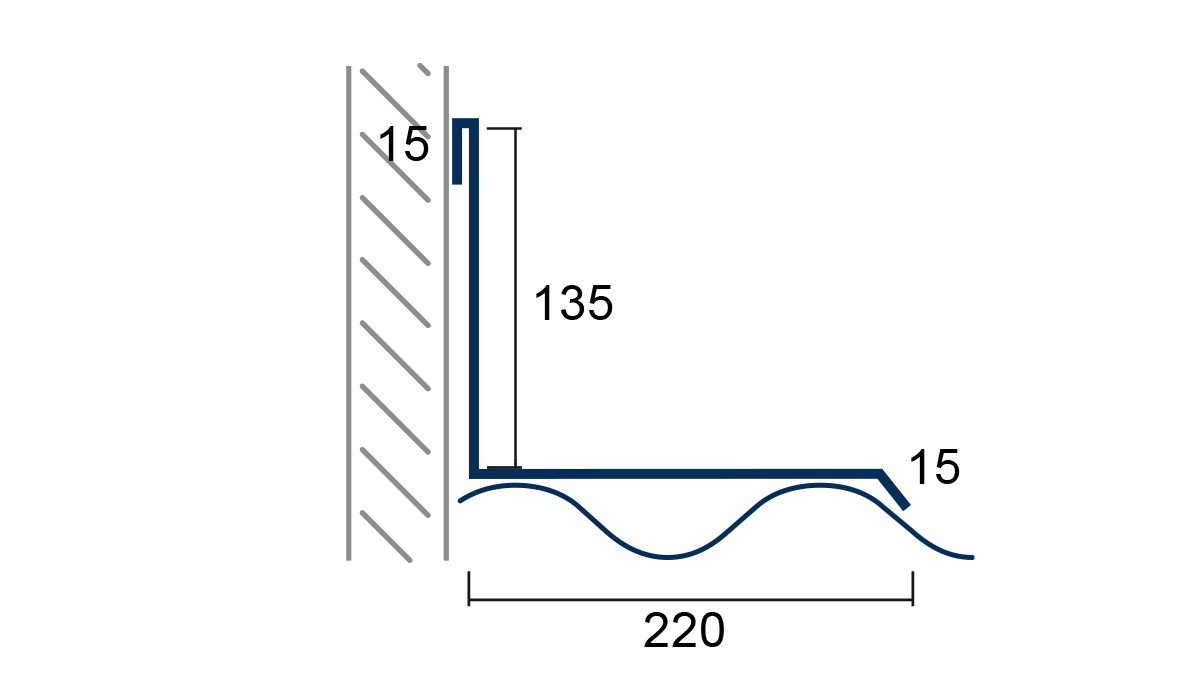Der seitliche Wandanschluss (15/135/220/15) wird von der Traufe bis zum First beim Abdichten von Öffnungen zwischen Profiltafeln und höher stehenden Gebäudeteilen verwendet. Die Wandanschluss - Profile schließen diese Bereiche und verhindern das Eindringen von Feuchte in das Gebäude oder Tragwerk des Daches. Wir fertigen seitlich Wandanschlussprofile in unterschiedlichsten Farben und auf Wunsch auch in individuellen Formen. Wenn Sie im Standard nicht das passenden Kantteil finden, fragen Sie Ihren Bedarf einfach an.