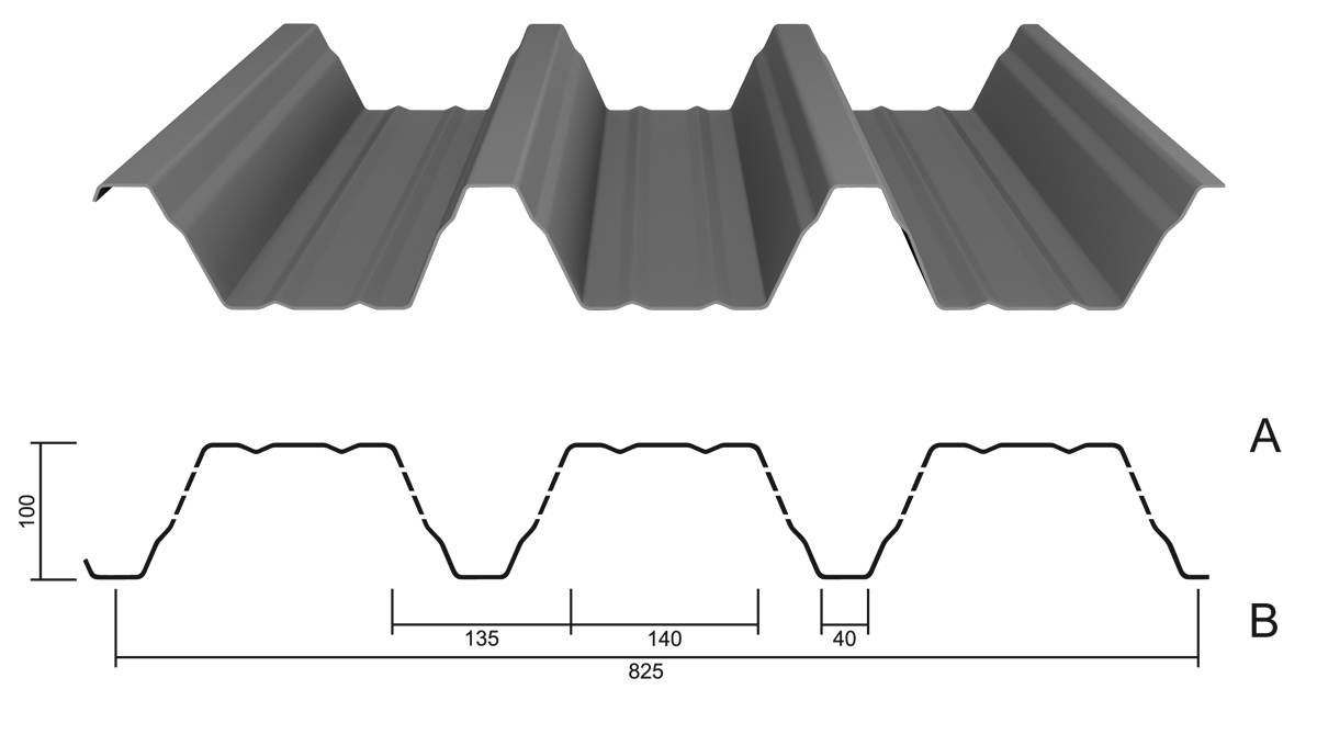 Das Stahltrapezprofil M 100/275 fertigen wir in vielen Standardfarben. Das Hochprofil kann als Dach- oder Wandprofil eingesetzt werden. Die maximale Fertigungslänge beträgt 25.000 mm. Viele verschiedene Varianten in Farbe und Beschichtung sind möglich.