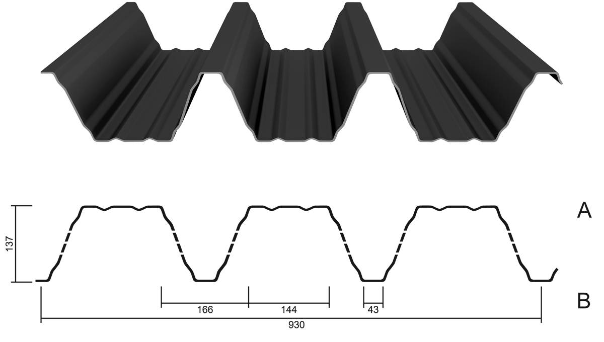 Das Stahltrapezprofil M 135.1/310 fertigen wir in vielen Standardfarben. Das Hochprofil kann als Dach- oder Wandprofil eingesetzt werden. Die maximale Fertigungslänge beträgt 28.000 mm. Viele verschiedene Varianten in Farbe und Beschichtung sind möglich.
