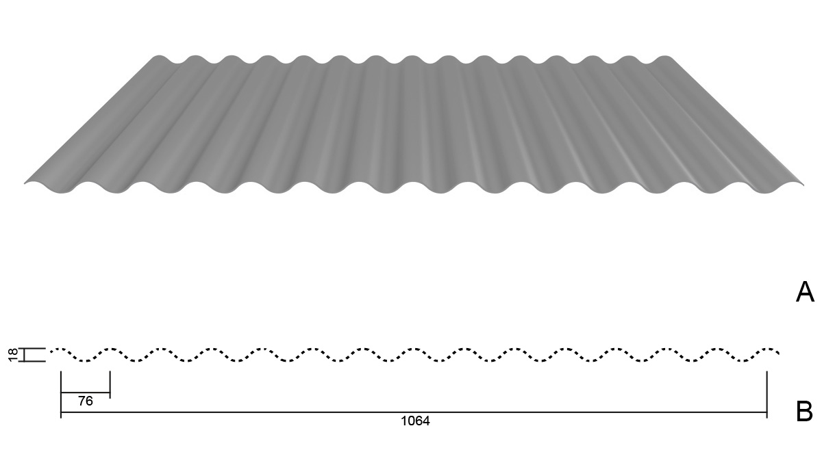 Das Aluminium Wellprofil M 18/76 fertigen wir in vielen Standardfarben, es kann als Dach- oder Wandprofil eingesetzt werden. Die maximale Fertigungslänge beträgt 8.000 mm. Verschiedene Varianten in Farbe sind möglich.