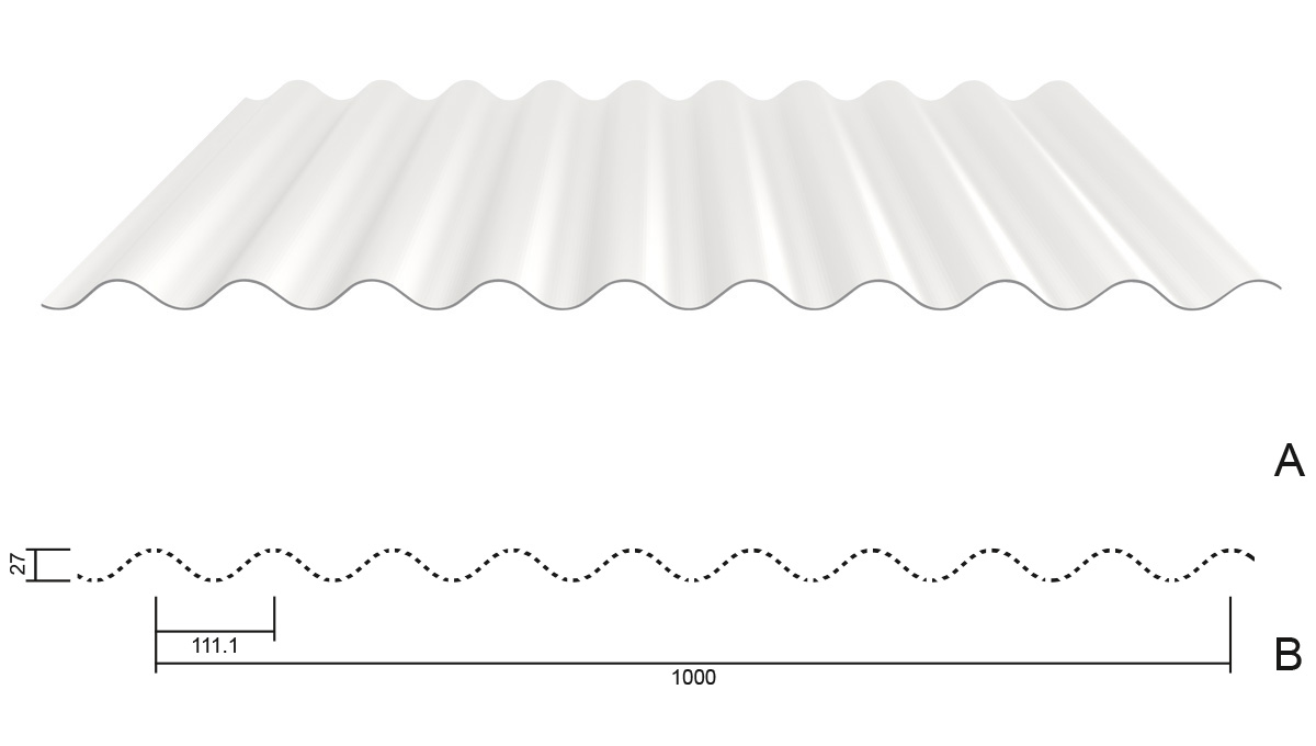 Das Wellprofil M 27/111 fertigen wir in vielen Standardfarben, es kann als Dach- oder Wandprofil eingesetzt werden. Die maximale Fertigungslänge beträgt 24.300 mm. Viele verschiedene Varianten in Farbe und Beschichtung sind möglich.