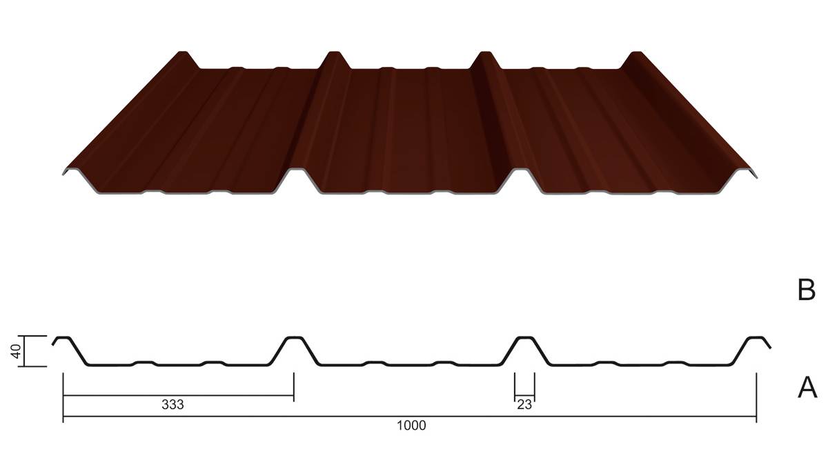 Das Stahltrapezprofil M 40/333 fertigen wir in vielen Standardfarben, es kann als Dach- oder Wandprofil eingesetzt werden. Die maximale Fertigungslänge beträgt 24.300 mm. Viele verschiedene Varianten in Farbe und Beschichtung sind möglich.