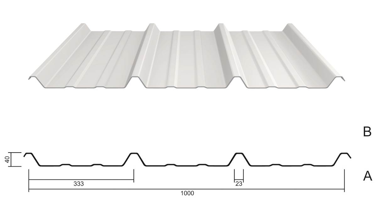 Das Stahltrapezprofil M 40/333 fertigen wir in vielen Standardfarben, es kann als Dach- oder Wandprofil eingesetzt werden. Die maximale Fertigungslänge beträgt 24.300 mm. Viele verschiedene Varianten in Farbe und Beschichtung sind möglich.