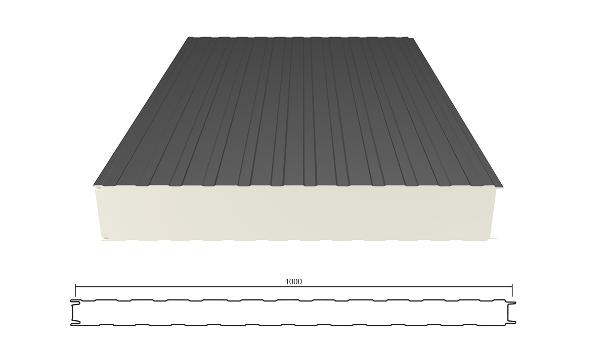 Eine Sandwich Wandplatte besteht aus einem Verbund zweier metallischer Deckschalen und einem Stützkern aus hochwärmedämmenden PIR-Schaum. Durch die Kombination der verschiedenen Materialien kann die Errichtung einer gedämmten Wand besonders schnell, einfach und flexibel ausgeführt werden. Gute Wärmedämmung machen diese Bauelemente auch für Bauherren außerhalb des Industriebau-Bereiches interessant. Kerndicken von 40 - 120 mm sind möglich.