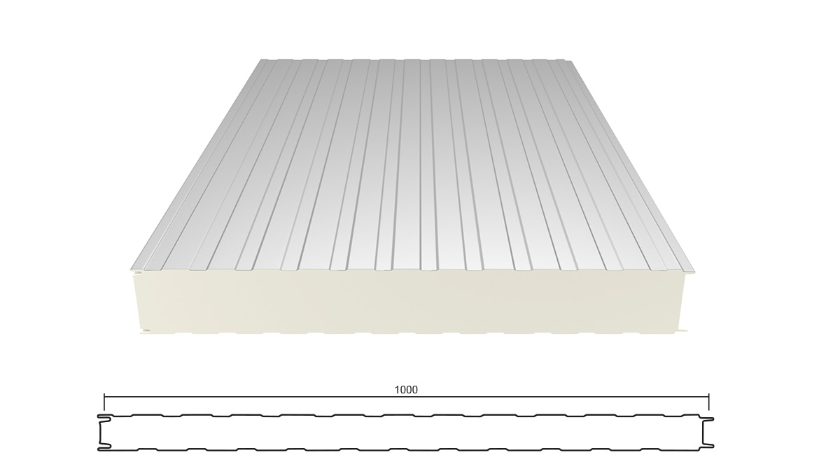 Eine Sandwich Wandplatte besteht aus einem Verbund zweier metallischer Deckschalen und einem Stützkern aus hochwärmedämmenden PIR-Schaum. Durch die Kombination der verschiedenen Materialien kann die Errichtung einer gedämmten Wand besonders schnell, einfach und flexibel ausgeführt werden. Gute Wärmedämmung machen diese Bauelemente auch für Bauherren außerhalb des Industriebau-Bereiches interessant. Kerndicken von 40 - 120 mm sind möglich.