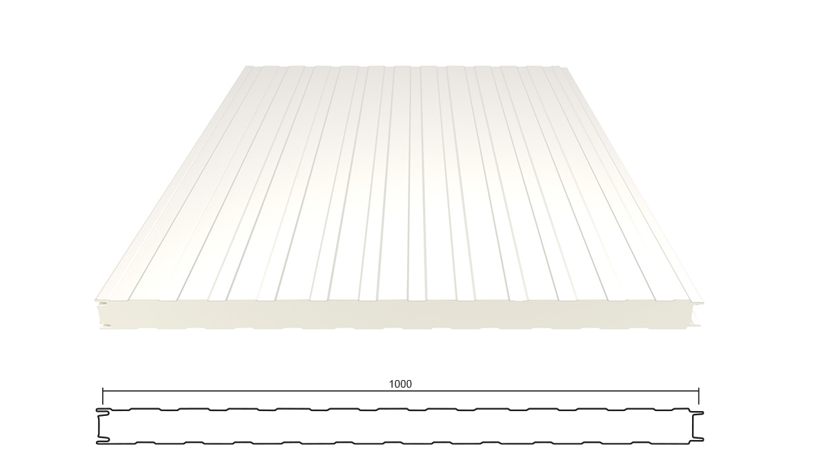 Eine Sandwich Wandplatte besteht aus einem Verbund zweier metallischer Deckschalen und einem Stützkern aus hochwärmedämmenden PIR-Schaum. Durch die Kombination der verschiedenen Materialien kann die Errichtung einer gedämmten Wand besonders schnell, einfach und flexibel ausgeführt werden. Gute Wärmedämmung machen diese Bauelemente auch für Bauherren außerhalb des Industriebau-Bereiches interessant. Kerndicken von 40 - 120 mm sind möglich.