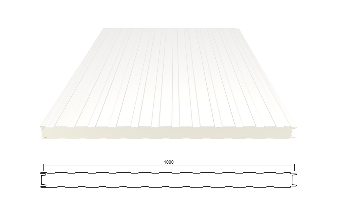 Eine Sandwich Wandplatte besteht aus einem Verbund zweier metallischer Deckschalen und einem Stützkern aus hochwärmedämmenden PIR-Schaum. Durch die Kombination der verschiedenen Materialien kann die Errichtung einer gedämmten Wand besonders schnell, einfach und flexibel ausgeführt werden. Gute Wärmedämmung machen diese Bauelemente auch für Bauherren außerhalb des Industriebau-Bereiches interessant. Kerndicken von 40 - 120 mm sind möglich.