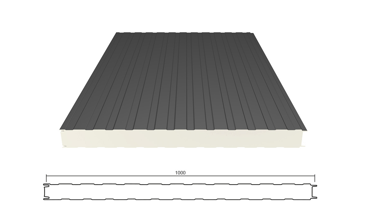 Eine Sandwich Wandplatte besteht aus einem Verbund zweier metallischer Deckschalen und einem Stützkern aus hochwärmedämmenden PIR-Schaum. Durch die Kombination der verschiedenen Materialien kann die Errichtung einer gedämmten Wand besonders schnell, einfach und flexibel ausgeführt werden. Gute Wärmedämmung machen diese Bauelemente auch für Bauherren außerhalb des Industriebau-Bereiches interessant. Kerndicken von 40 - 120 mm sind möglich.