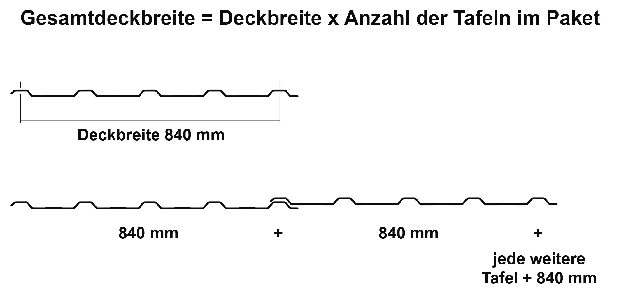 | Deckbreite je Tafel | Gesamtdeckbreite |