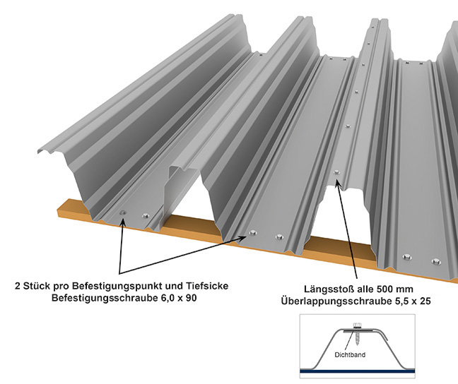 - Grundmaterial: Stahlkern, beidseitig verzinkt