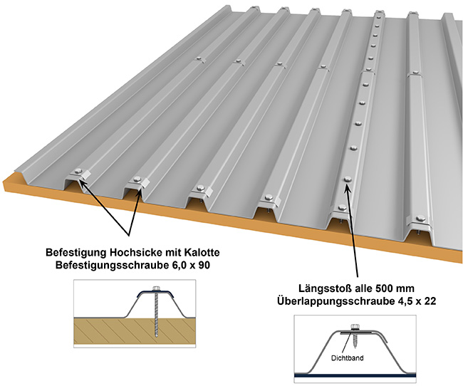 - Grundmaterial: Stahlkern, beidseitig verzinkt