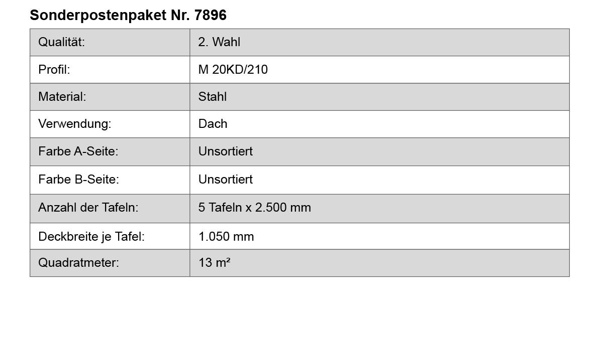 Profil M 20KD/210 - 5 Tafeln x 2.500 mm = 13,13 m²