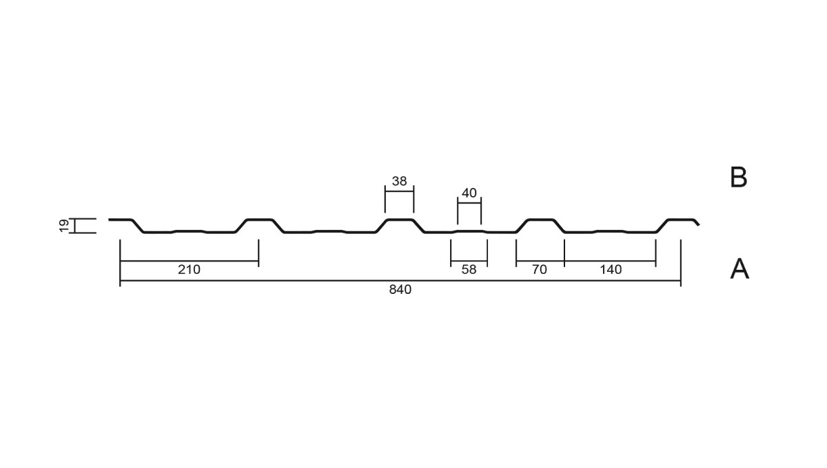 - Deckbreite je Tafel: 840 mm